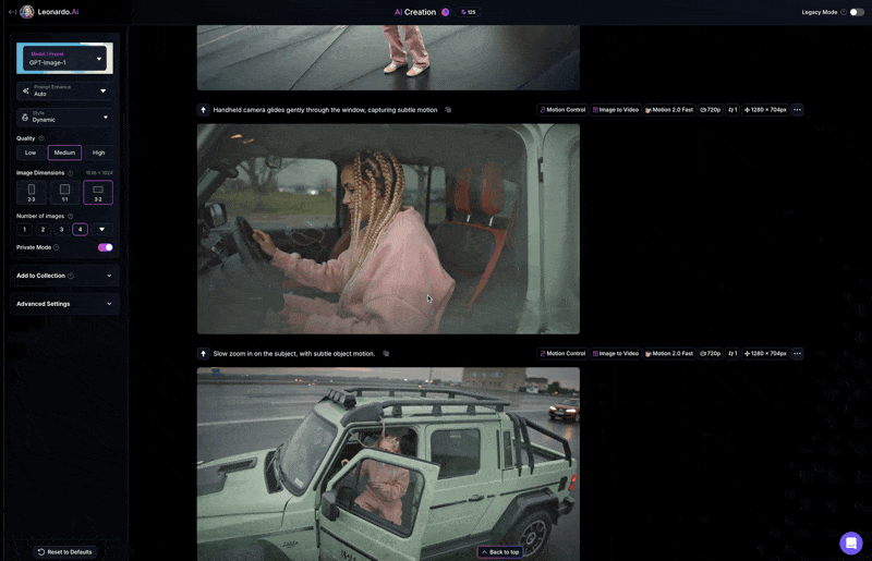 Generate First Set: From the moods and terms, prompts are crafted, reference images are tested, and a look is defined.